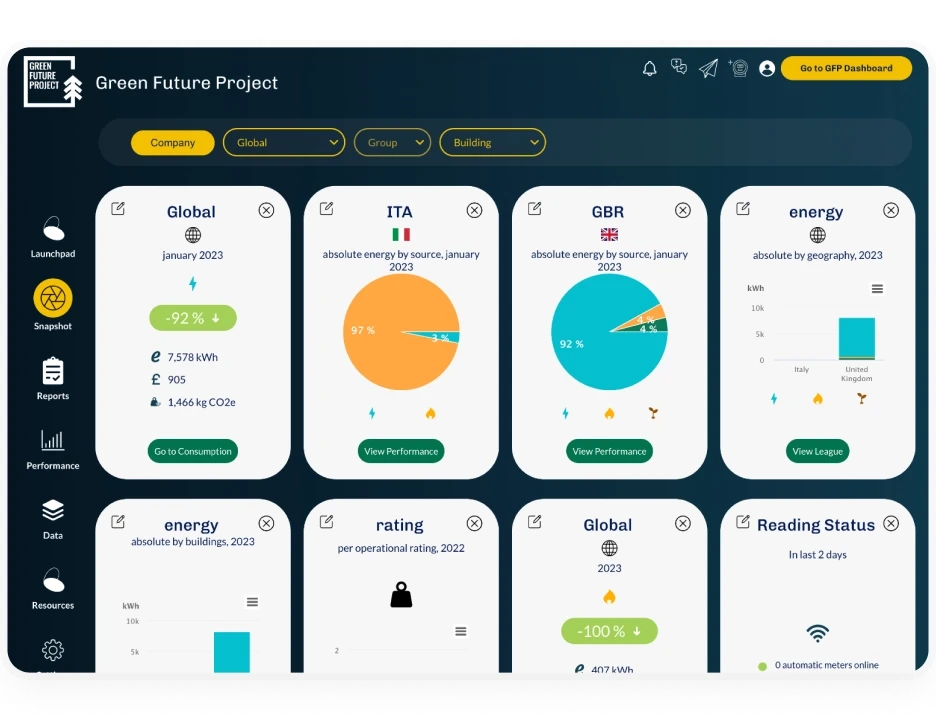 By reimagining the user experience with a customizable, card-based interface, I created a more intuitive way for businesses to track and manage their energy and carbon data. Users could easily adjust settings, rearrange, or remove key insights and metrics based on their organization's needs.